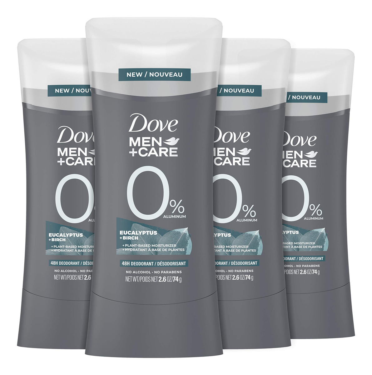 Desodorante em bastão DOVE MEN + CARE para homens Desodorante sem alumínio à base de plantas de origem natural de eucalipto e bétula, cinza, 2,6 onças (pacote com 4) — O novo desodorante Dove de eucalipto e bétula em bastão com 0% de alumínio foi especialmente desenvolvido para homens que buscam um desodorante natural que funcione. – Uma fórmula não irritante, este desodorante é infundido com hidratantes vegetais para ajudar a proteger suas axilas do desconforto. – Com 48 horas de proteção contra odores, este desodorante em bastão fará com que você se sinta fresco e confiante por mais tempo. – Este desodorante natural tem um aroma refrescante de eucalipto e bétula para um frescor duradouro. – Este desodorante masculino sem alumínio desliza suavemente e é resistente ao odor, mas não à pele.