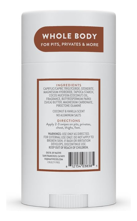 Desodorante de corpo inteiro Native Whole Body, a solução definitiva para combater o mau cheiro além das axilas, tanto para mulheres quanto para homens. Este produto oferece proteção contra odores clinicamente comprovada por 72 horas para suas fossas, partes íntimas e muito mais. Feito sem alumínio, parabenos, bicarbonato de sódio e talco, nosso desodorante é suave para peles sensíveis e seguro para uso em todas as áreas sensíveis. Experimente o frescor e a confiança que vêm com a proteção durante todo o dia. Os sprays de longa duração são projetados para o frescor de todo o corpo. Eles oferecem proteção contra odores por 72 horas, garantindo que você permaneça fresco e confiante, não importa o que seu dia traga. O desodorante vem em aromas sublimes que não apenas combatem o odor corporal, mas também deixam você cheirando bem o dia todo. Se você está indo para a academia, escritório ou apenas descansando em casa, o Native Whole Body Deodorant tem o que você precisa. Escolha o Native para uma nova abordagem de proteção contra odores corporais. – 72 horas de proteção contra odores – O desodorante corporal integral oferece uma nova maneira de combater o odor em todo o corpo, fornecendo proteção contra odor clinicamente comprovada por 72 horas para axilas, partes íntimas e muito mais. – Sem alumínio, parabenos, bicarbonato de sódio e talco, este desodorante é seguro para peles e áreas sensíveis. – Feito sem alumínio, parabenos, bicarbonato de sódio e talco, este desodorante é seguro para peles e áreas sensíveis. – Feito sem alumínio, parabenos, bicarbonato de sódio e talco Necessidade – Esses desodorantes de longa duração são projetados para proporcionar frescor a todo o corpo, mantendo você confiante e fresco durante todo o dia. – Crueldade Gratuito – O desodorante nativo nunca é testado em animais, exceto em humanos que se voluntariam para experimentar o desodorante nativo. – Homens e mulheres – A fórmula de alto desempenho da Native é forte o suficiente para homens e mulheres. Tudo o que você precisa escolher é o seu perfume favorito. Instruções: Não aplique na pele quebrada, irritada, com coceira ou recém-barbeada.