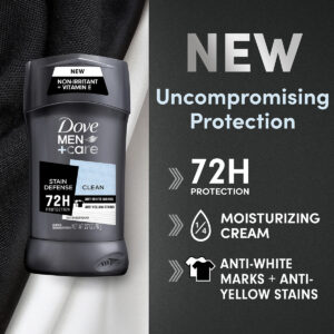 Desodorante antitranspirante DOVE MEN + CARE. Proteção antimanchas de 72 horas. Desodorante invisível para homens, 2,7 onças (pacote com 4) – 72 horas de proteção intransigente: o desodorante antitranspirante Dove Men+Care Stain Defense Clean oferece uma poderosa proteção contra suor e odor de 72 horas – Antimarcas e manchas: este antitranspirante masculino tem uma fórmula otimizada para reduzir a aparência de manchas brancas e manchas amarelas, ao mesmo tempo em que fornece uma poderosa proteção contra suor e odor. – 1/4 de CREME HIDRATANTE: Projetado com creme hidratante, nosso desodorante antitranspirante ajuda a reter a pele hidrate e proteja contra irritações para deixar as axilas mais confortáveis. – Fragrância duradoura: desfrute do aroma sutil e duradouro do nosso desodorante antitranspirante Stain Defense criado com notas de flor de laranjeira, lavanda e musgo de carvalho. – COMO USAR: Aplique este desodorante antitranspirante em bastão uniformemente nas axilas para proteção durante todo o dia contra suor e manchas.
