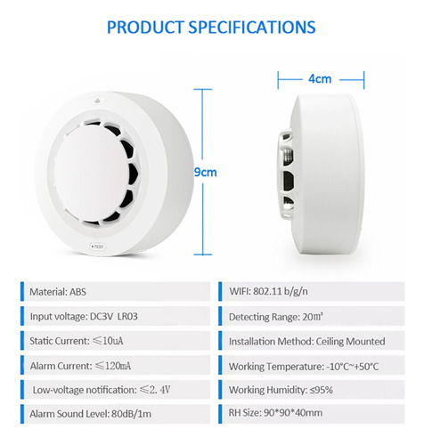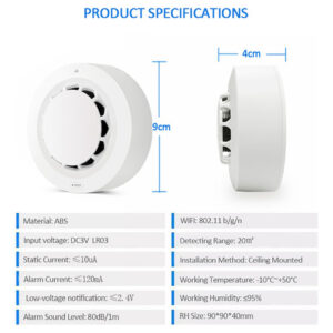 Detecção de fumaça e temperatura e umidade 2 em 1 Você não só pode detectar fumaça, mas também medir a temperatura e a umidade.