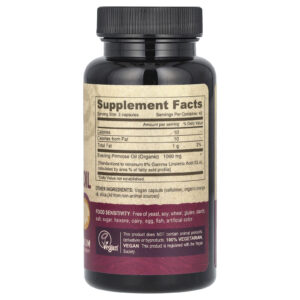 O óleo de prímula usado em nosso produto é orgânico, prensado a frio e não refinado. Ele vem em cápsulas veganas que são feitas de celulose, em vez da gelatina comumente usada.