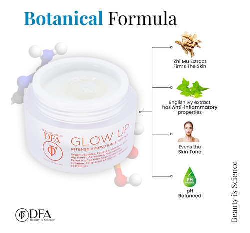 Hidratação e lifting intensos DFA Glow Up, cuidado antienvelhecimento, melhor hidratante facial, creme calmante para cica, ilumina a pele, antiinflamatório, cuidados com a pele coreanos, 50 g de creme