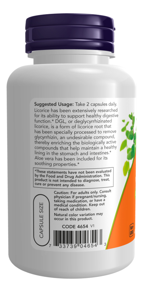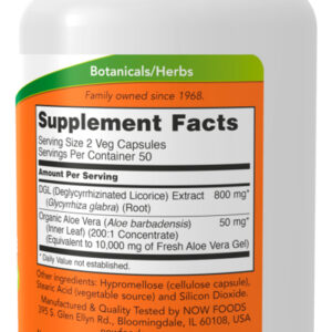Dgl 400mg Now Food com Aloe Vera 100 Caps Importado