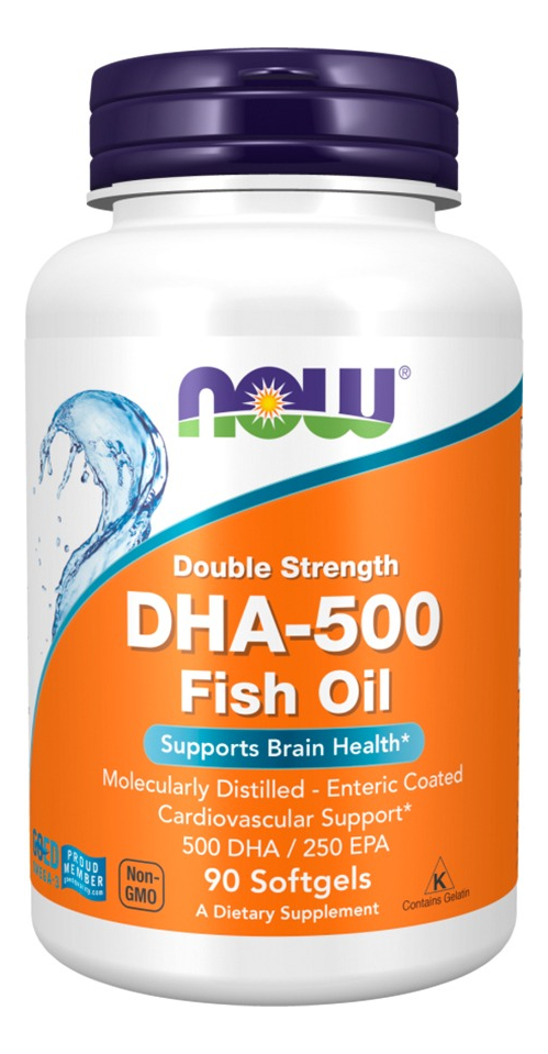 1. Suporte Principal: DHA-500 da Now Foods é um suplemento de óleo de peixe concentrado, oferecendo 500mg de DHA e 250mg de EPA por cápsula. Este suplemento é formulado para fornecer os ácidos graxos ômega-3 essenciais, conhecidos por seus benefícios naturais.