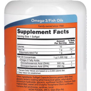 1. Suporte Principal: DHA-500 da Now Foods é um suplemento de óleo de peixe concentrado, oferecendo 500mg de DHA e 250mg de EPA por cápsula. Este suplemento é formulado para fornecer os ácidos graxos ômega-3 essenciais, conhecidos por seus benefícios naturais.