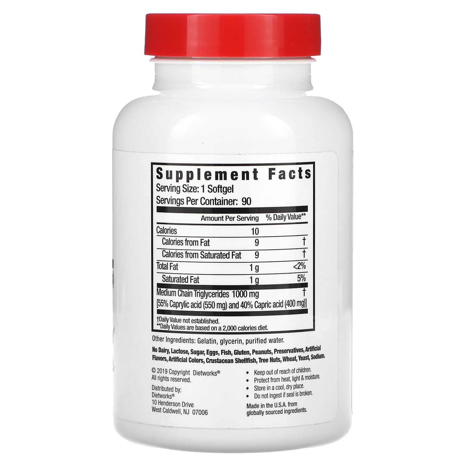 DietWorks Óleo TCM 1.000 mg 90 Cápsulas Softgel – DietWorks Suplementos Controle de peso Óleo de TCM e Ácido Caprílico.