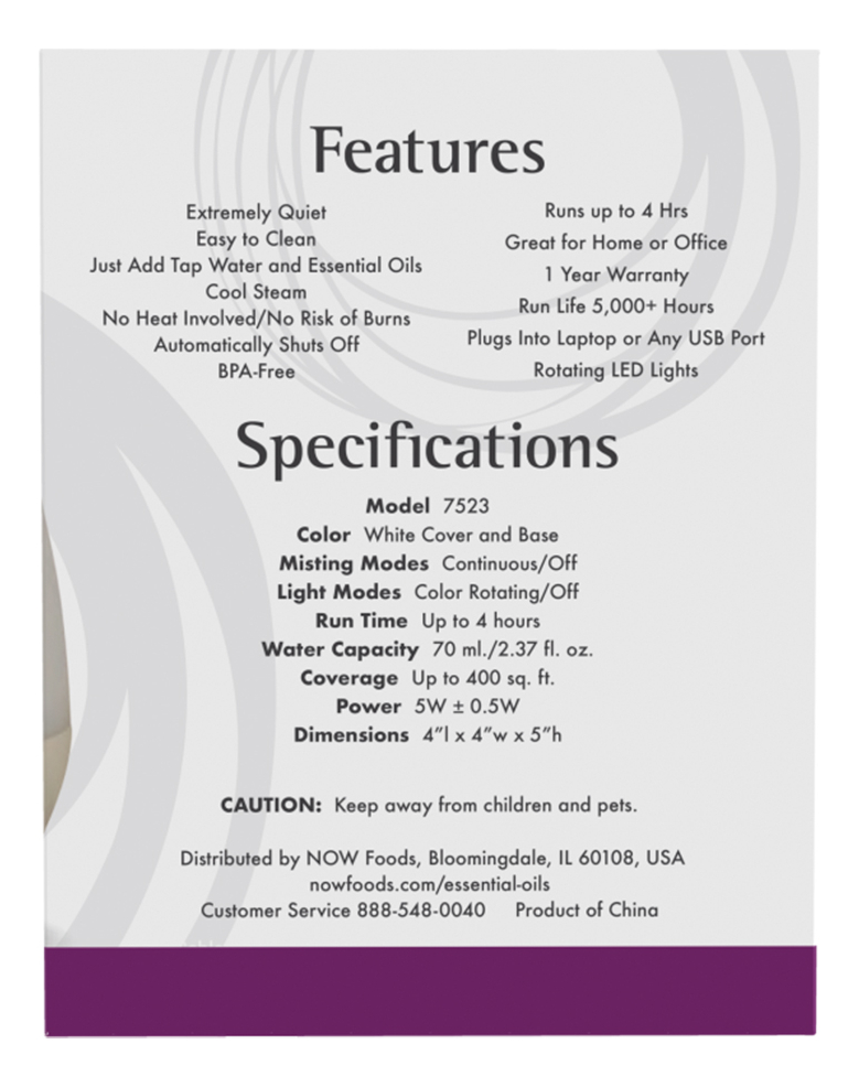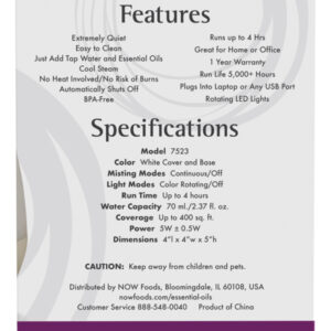 Difusor Ultrassônico Óleo Essencial Now Foods Usb Branco