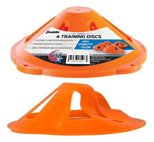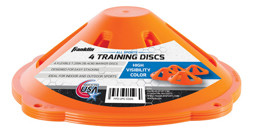 Franklin Sports unisex adult teen Discs football cones and pylons, orange, Orange US – 4 flexible 7.25-Inch marker disks – Perfect for indoor or outdoor sports – Designed for easy stacking – High visibility color – Great for training drills