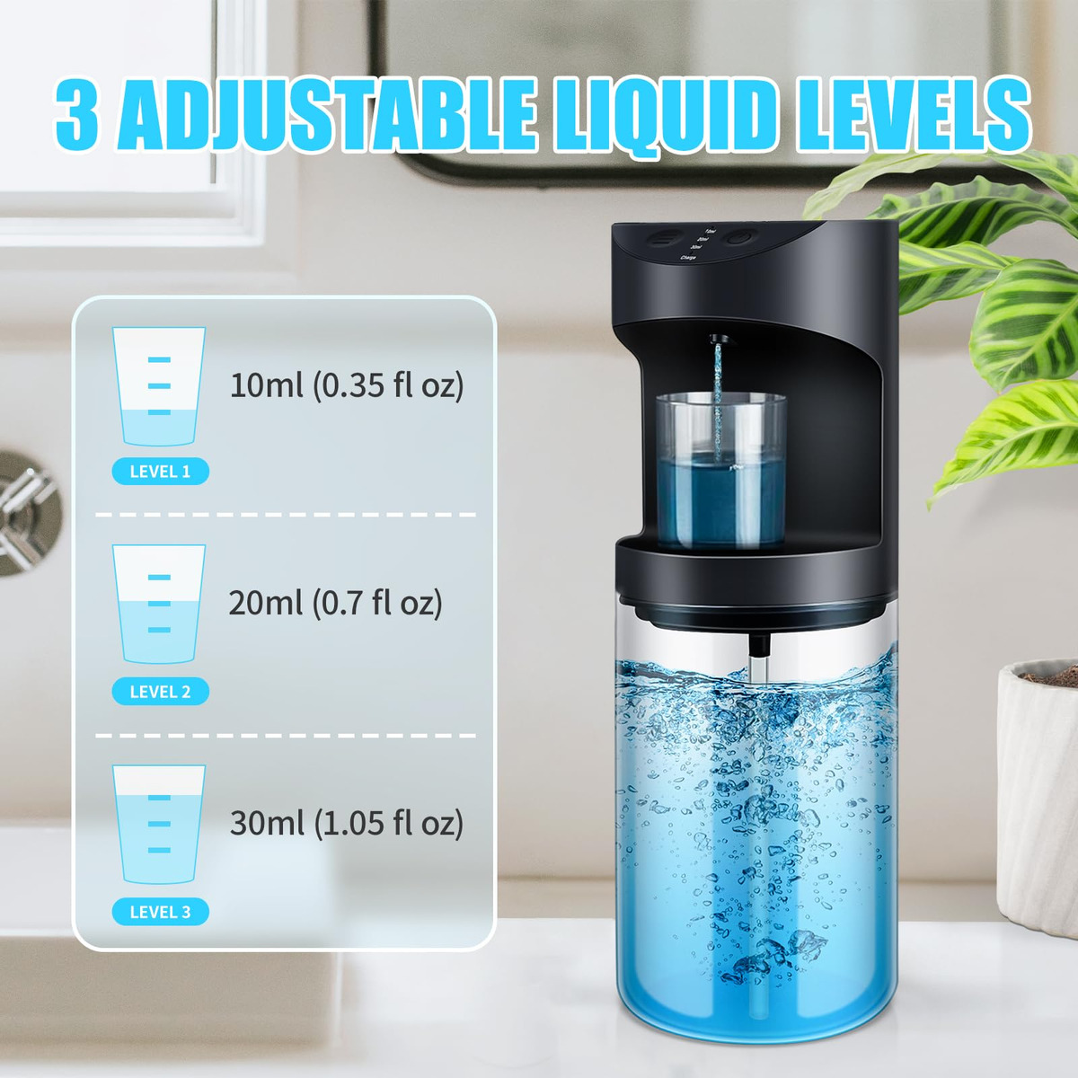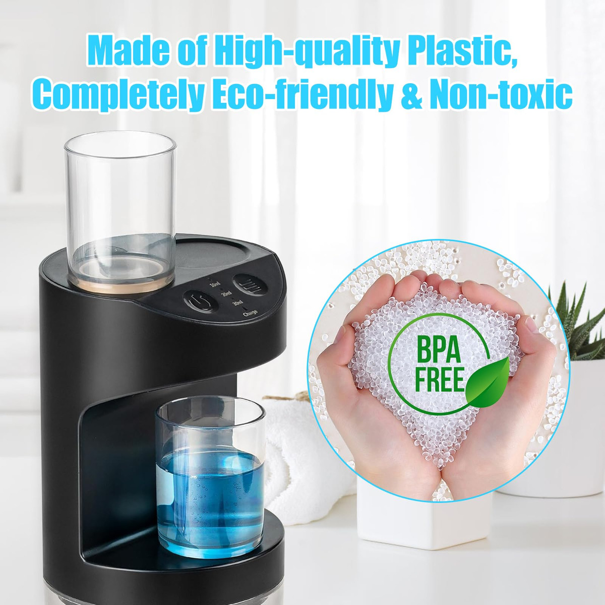Dispensador automático de enxaguante bucal Viicuper sem toque – Dispensador automático de enxaguante bucal montado na parede para banheiro, lavatório e cozinha com 2 copos magnéticos – Dispensador automático de enxaguante bucal sem toque Com o novo design do dispensador automático de enxaguante bucal, depois de definir a capacidade de água, basta colocar o copo magnético de água em uma posição fixa para dispensar água automaticamente. O design sem toque é mais conveniente e higiênico em comparação aos métodos tradicionais, proporcionando uma melhor experiência para sua vida. (Dicas: certifique-se de usar uma cabeça de carregamento de 5V1A para carregar.) – Health First Nossos dispensadores de enxaguante bucal são feitos de materiais de alta qualidade, com uma classificação à prova d'água de IPX7. Totalmente ecológico e não tóxico, livre de BPA. A saúde de você e de sua família é nossa primeira prioridade. Ao mesmo tempo, a grande capacidade de 550 mL (19,36 fl oz) não precisa se preocupar em adicionar enxaguante bucal com frequência. – 3 níveis de líquido ajustáveis Três configurações de capacidade ajustáveis para atender com precisão às diferentes necessidades de pessoas diferentes, ainda assim adequados para crianças e idosos. 3 níveis ajustáveis de dispensação de enxaguante bucal: 10 ml (0,35 fl oz) 20 ml (0,7 fl oz) 30 ml (1,05 fl oz). Vem com duas cores diferentes de copos magnéticos para sua conveniência. – Fácil de instalar Limpe a parede antes de colar, tente colar em um ladrilho liso e plano, cole e fixe por 48 horas para garantir que esteja forte o suficiente antes de pendurar a máquina de enxaguatório bucal. Os parafusos acoplados e outros acessórios também suportam o plano de madeira. Nota: A pasta não funciona em paredes pintadas, paredes de cal e papel de parede. – Assistência confiável. Se você encontrar algum problema com o produto, não hesite em nos contatar. Sua confiança é importante para nós e faremos o possível para resolver quaisquer dúvidas que você possa ter.