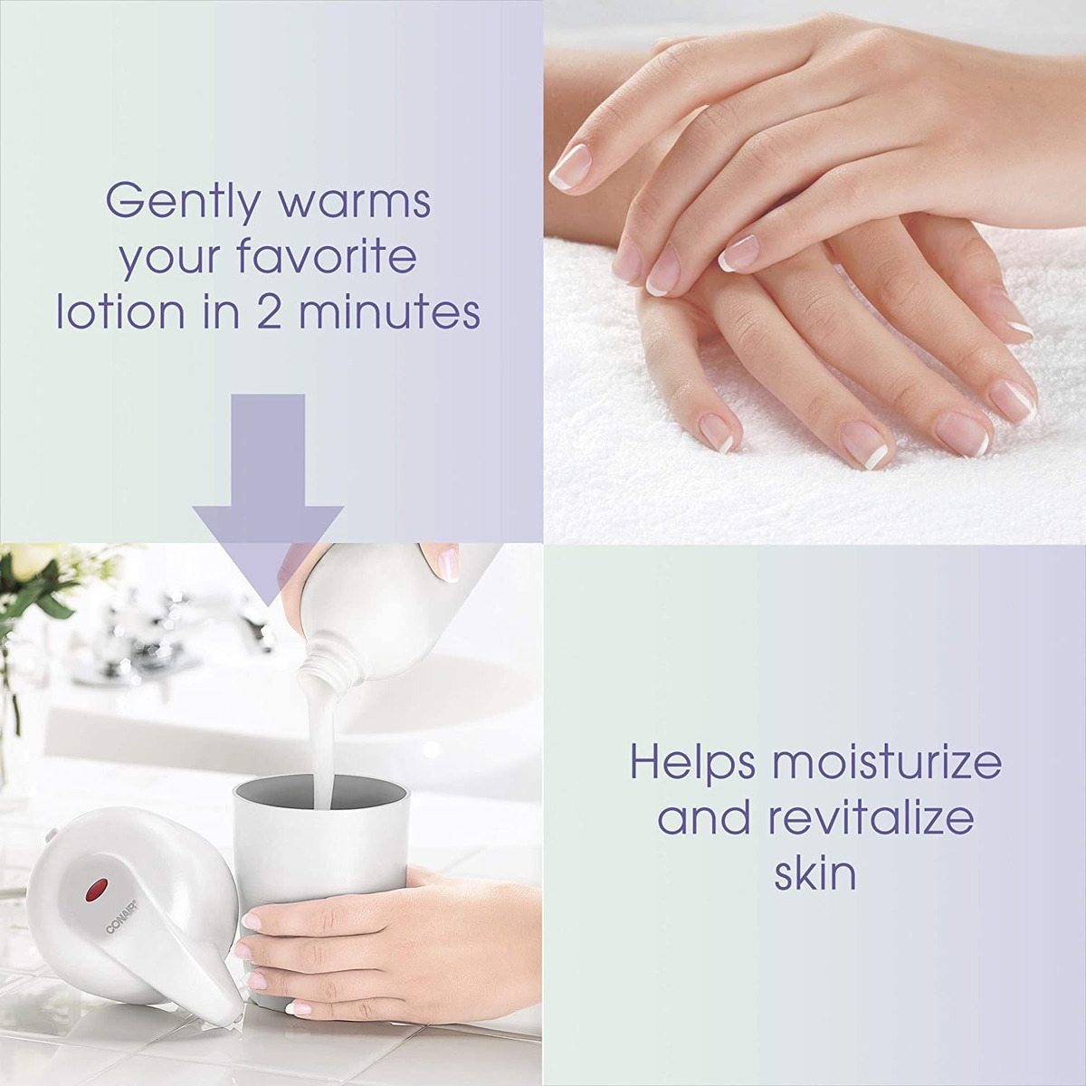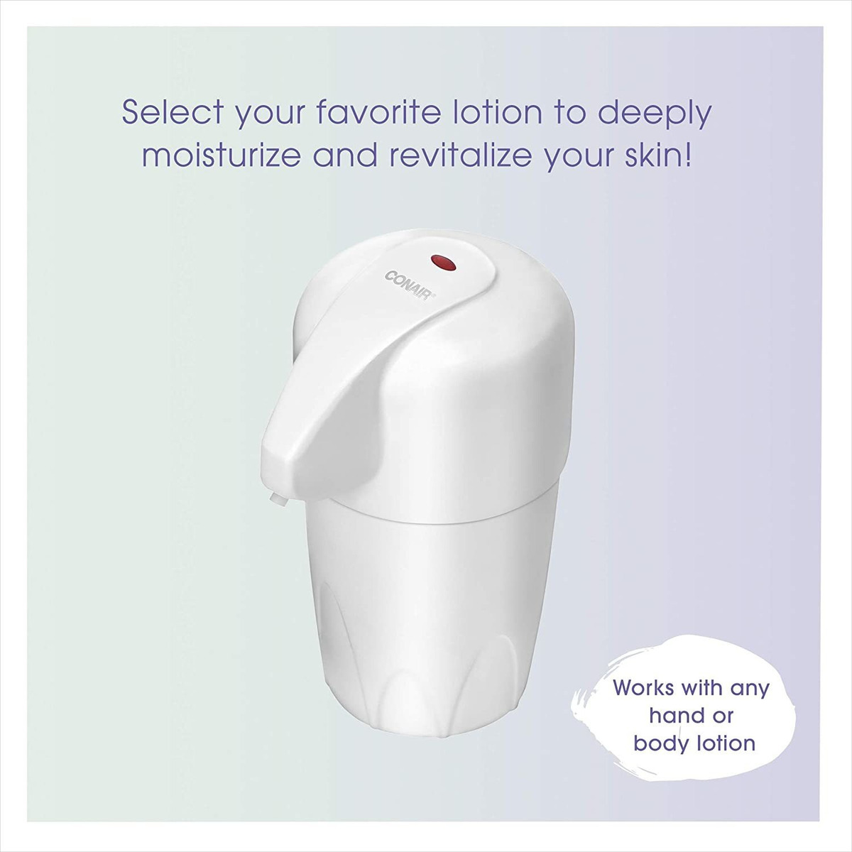 Características principais ——————– 1. **Dispensador de loção aquecida**: aquece a loção para uma experiência de aplicação calmante, melhorando a absorção e o relaxamento da pele. 2. **Tempo de aquecimento rápido**: Pronto para uso em apenas dois minutos, garantindo o rápido aproveitamento de sua sessão de mimos. 3. **Experiência relaxante de spa**: ideal para tratar a pele seca e estressada e diminuir os sinais de envelhecimento e danos causados pelo sol. 4. **Fácil de usar**: basta encher o reservatório com sua loção para mãos ou corpo favorita e desfrutar de uma dispensação sem esforço. 5. **Design compacto**: elegante e economiza espaço, perfeito para qualquer rotina de banheiro ou cuidados com a pele. Ficha técnica ——————– – Marca: Conair – Dimensões: aproximadamente 12,7 cm de altura e 10,2 cm de diâmetro – Material: plástico durável – Instruções de cuidado: limpe com um pano úmido para facilitar a limpeza – Adequado para: loções para mãos e corpo Experimente o que há de melhor em cuidados com a pele com o dispensador de loções aquecidas Conair. Este dispositivo inovador transforma sua loção normal em um tratamento quente e indulgente para sua pele, perfeito para transformar qualquer banheiro em um spa pessoal. Em apenas dois minutos, a loção escolhida é aquecida, permitindo uma penetração mais profunda e efeitos hidratantes aprimorados. Perfeito para quem tem pele seca ou irritada, o calor suave ajuda a aliviar o estresse e promove uma experiência rejuvenescedora. Com seu design elegante, o dispensador se encaixa perfeitamente em sua rotina de cuidados com a pele, adicionando um toque de luxo que você pode desfrutar todos os dias. Presenteie-se com uma pele mais lisa e macia, reduzindo os sinais visíveis de envelhecimento e melhorando a saúde geral da pele com esta ferramenta de beleza essencial.
