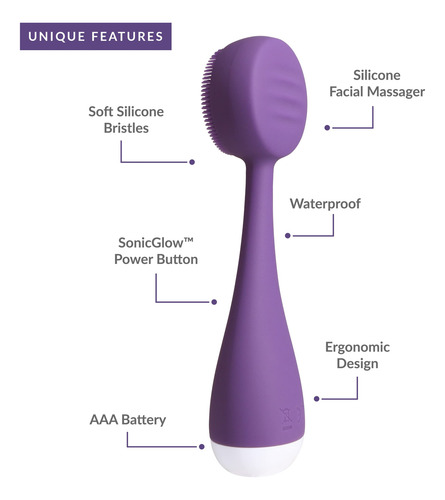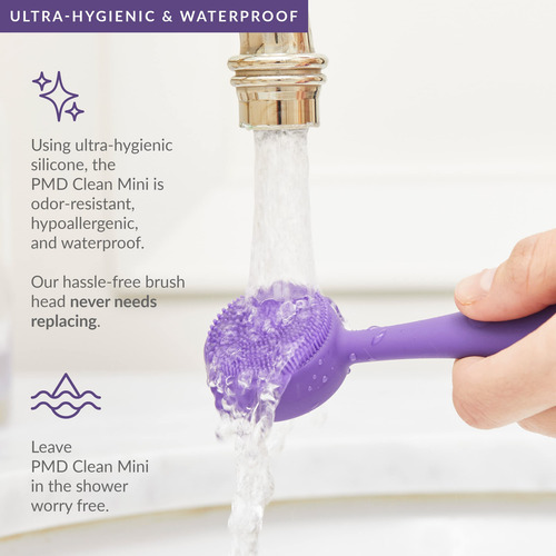 PMD Beauty Clean Mini — Dispositivo inteligente de limpeza facial com escova de silicone e massageador antienvelhecimento — Impermeável — Tecnologia de vibração SonicGlow — Limpe poros e cravos — Levanta, firma e tonifica a pele