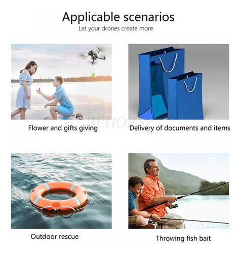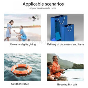 1.Nossos produtos podem ser aplicados em vários cenários, deixe seu drone criar mais, como: entrega de presentes, entrega de flores, entrega de itens de documentos, resgate ao ar livre, liberação de isca de peixe e assim por diante.