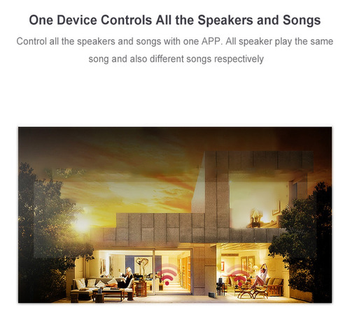 para vários ambientes O streamer de som sem fio permite que você toque música simultaneamente em salas diferentes. Você pode usá-lo quando estiver tomando banho, dirigindo um carro ou dando uma festa. Lindas músicas em todo o espaço.