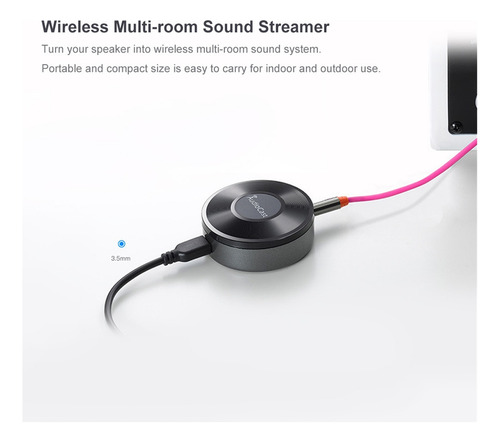 O Audiocast é um streamer de som sem fio inovador que é capaz de transformar seu alto-falante atual, barras de som e alto-falantes de home theater em um sistema de som sem fio para várias salas, conectando-se à sua rede Wi-Fi doméstica. Ele oferece a experiência mais fácil e fácil de usar para streaming de música. Você pode desfrutar de músicas incríveis em várias salas.