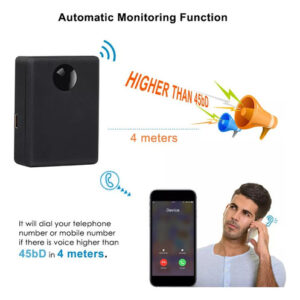 Ele discará seu número de telefone ou número de celular se houver voz superior a 45dB em 4 metros.