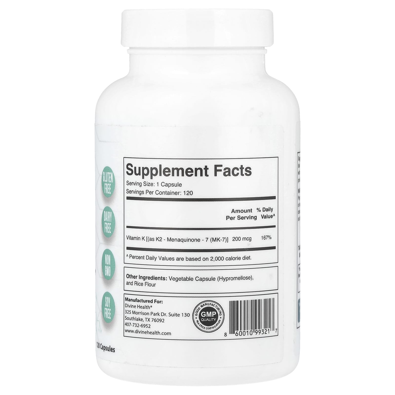 Divine Health Don Colbert MD Super K2 120 Cápsulas (200 mcg por Cápsula)