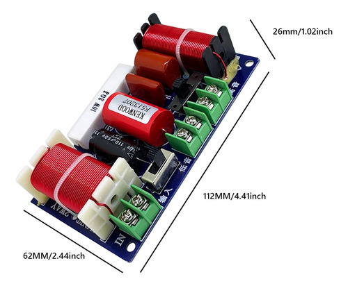 Característica: 1. Frequências baixas e altas ajustáveis: com um capacitor em série e paralelo, respectivamente, esse crossover de alto-falante permite ajustar as frequências baixas e altas de acordo com suas preferências.