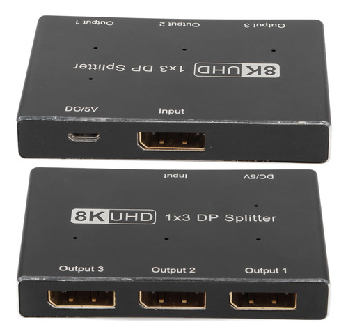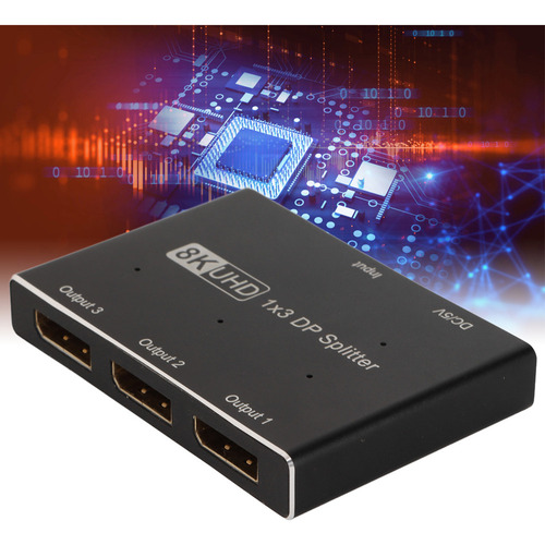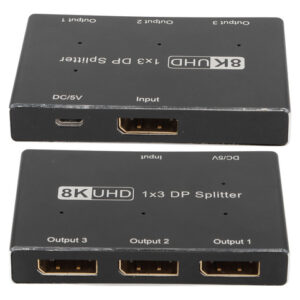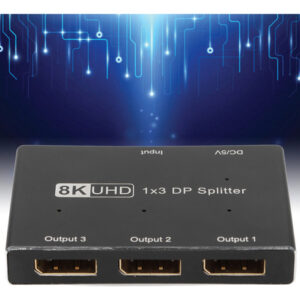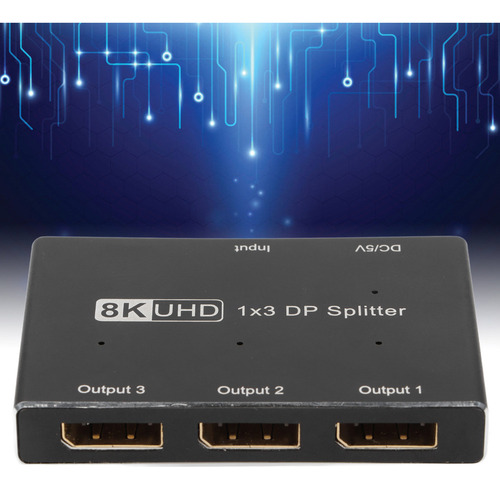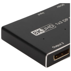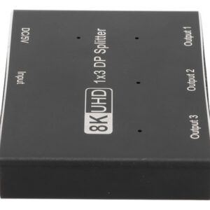 divisor DisplayPort 1×3, suporta SST, MST, 8K/30Hz.