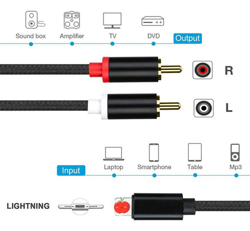 Divisor Usb L Para 2 Rca Y Para iPhone 6 7 8 X Xr Xs 11 1