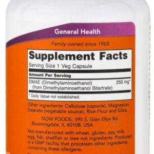 Dmae 250mg Now Foods 100 Veg Caps Dimetilaminoetanol Cápsulas Vegetarianas – Importado