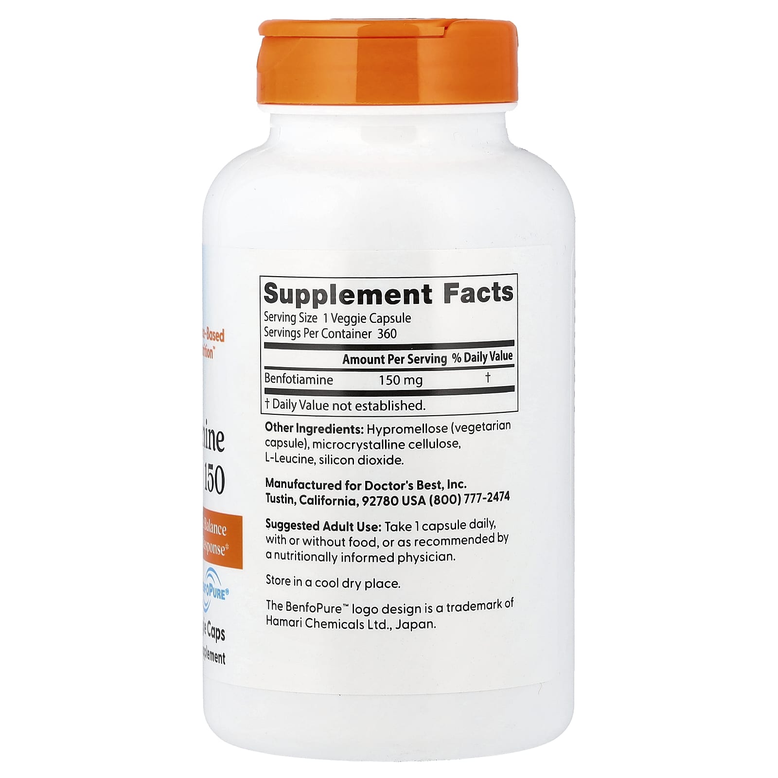 Doctors Best Benfotiamina com BenfoPure® 150 mg 360 Cápsulas Vegetais – Doctor’s Best Suplementos Antioxidantes Benfotiamina.