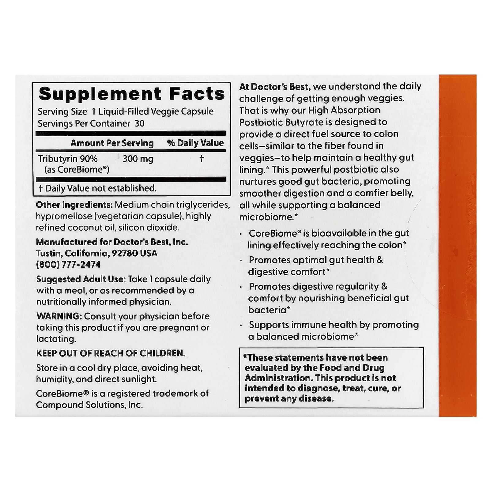 Doctors Best Butirato Pós-biótico de Alta Absorção 30 Cápsulas Vegetais Preenchidas com Líquido (300 mg por Cápsula) – Doctor’s Best Suplementos Saúde Intestinal Probióticos.