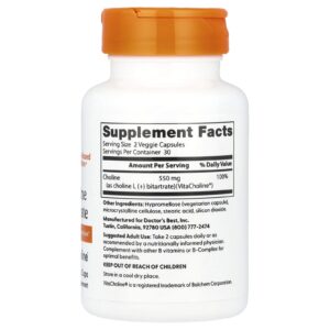 Doctors Best Choline L-Bitartarate 60 Cápsulas Vegetais (275 mg por Cápsula) – Doctor’s Best Suplementos Minerais Colina.