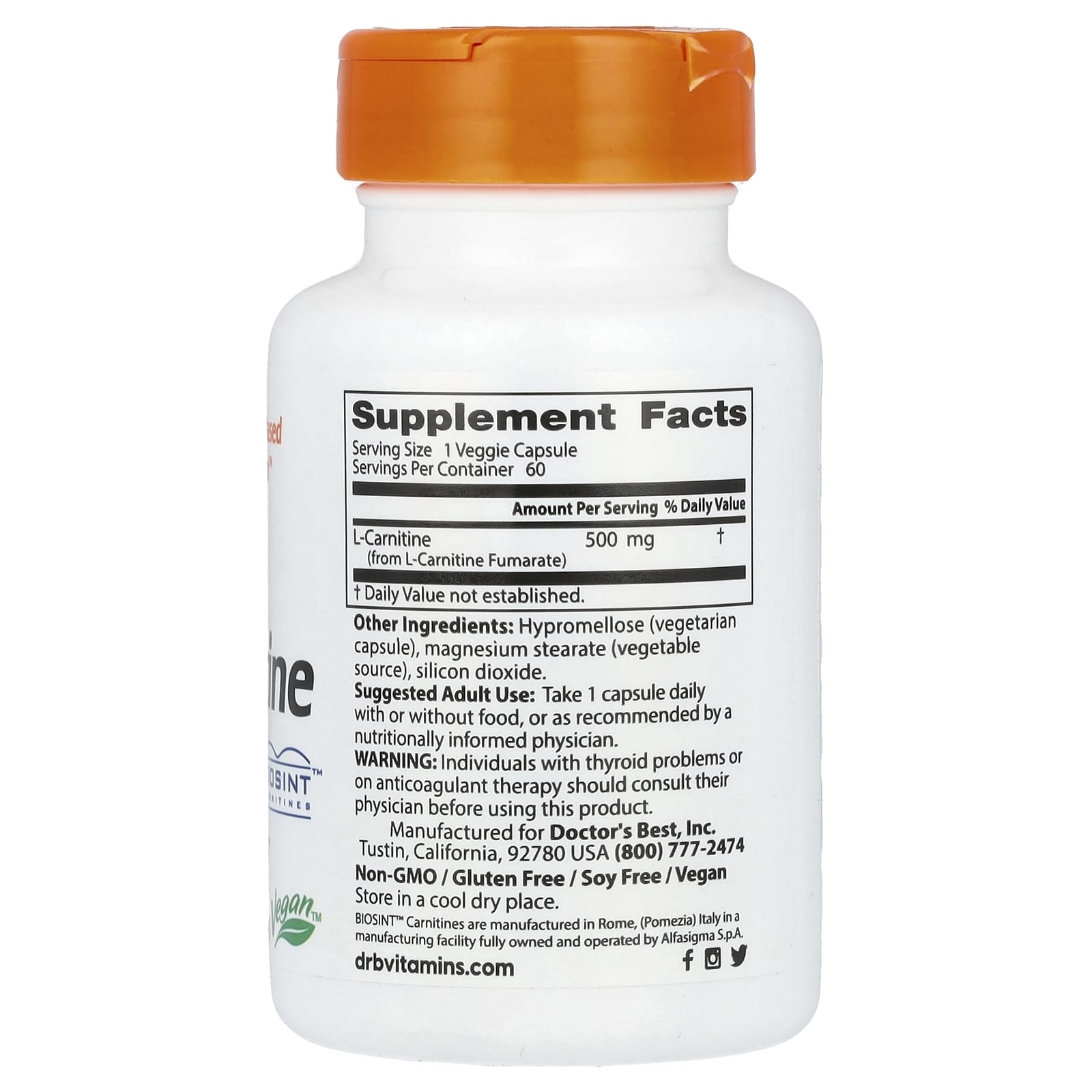 Doctor’s Best, Fumarato de L-carnitina com Biosint Carnitine, 60 Cápsulas Vegetais (500 mg por Cápsula Vegetal) – Doctor’s Best Suplementos Aminoácidos L-carnitina.