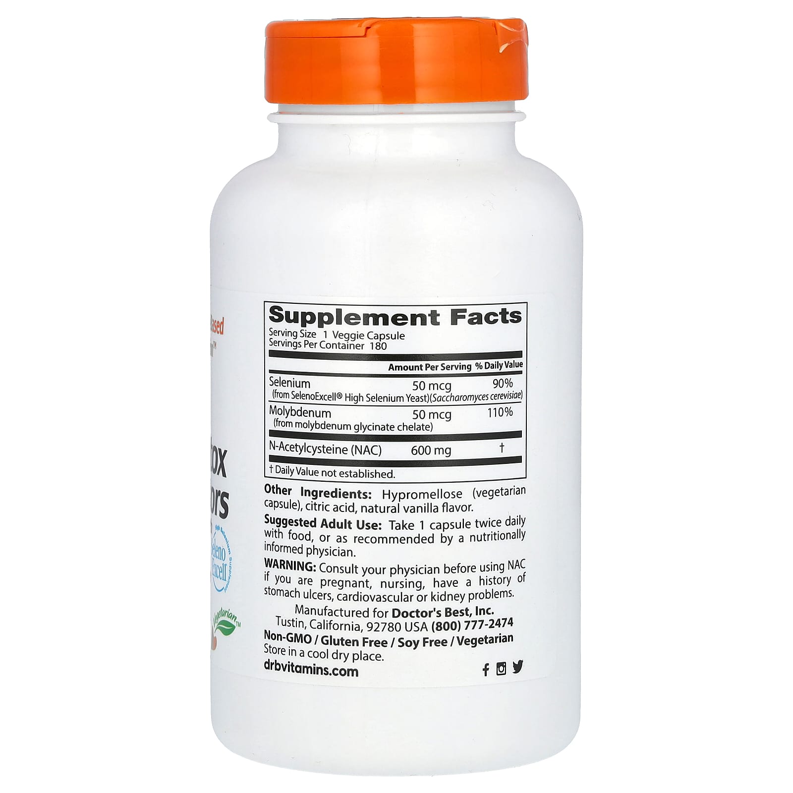 Doctor’s Best, Reguladores de NAC para Detox, 180 Cápsulas Vegetais – Doctor’s Best Suplementos Antioxidantes N-Acetil Cisteína (NAC).