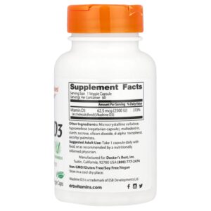 Doctors Best Vegano D3 com Vitashine D3 2.500 UI 60 Cápsulas Vegetais – Doctor’s Best Suplementos Vitaminas Vitamina D.