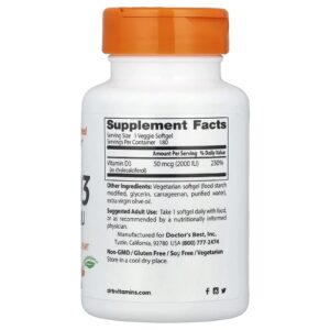 Doctors Best Vitamina D3 50 mcg (2.000 UI) 180 Cápsulas Softgel Vegetais – Doctor’s Best Suplementos Vitaminas Vitamina D.