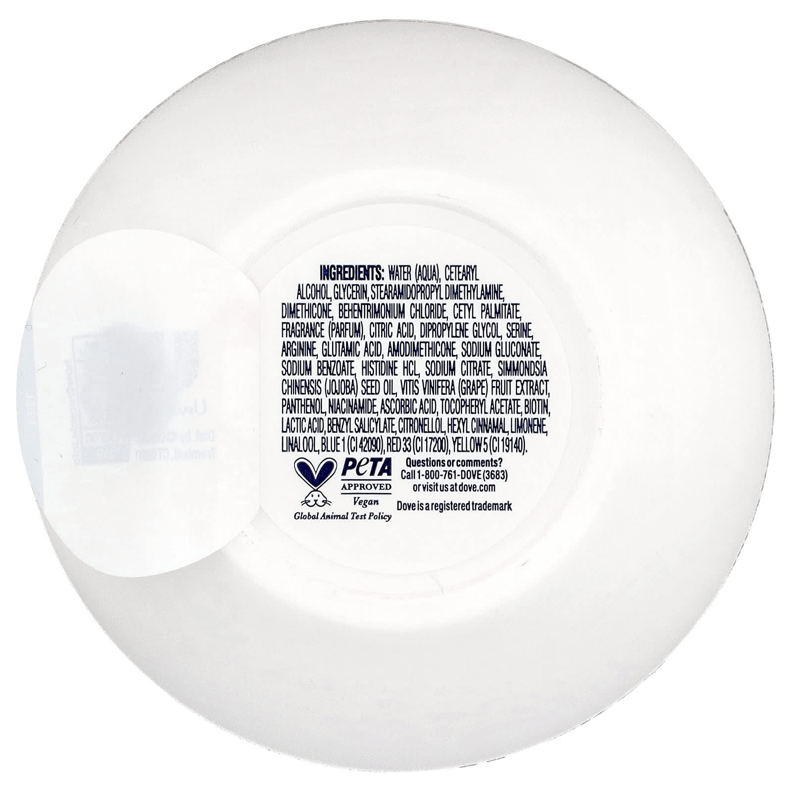 Água (aqua), álcool cetoestearílico, glicerina, stearamidopropyl dimethylamine, dimeticona, behentrimonium chloride, palmitato de cetila, fragrância (perfume), ácido cítrico, dimetildietilenoglicol, serina, arginina, ácido glutâmico, amodimethicone, gliconato de sódio, benzoato de sódio, cloridrato de histidina, citrato de sódio, óleo da semente de Simmondsia chinensis (jojoba), extrato da fruta de Vitis vinifera (uva), pantenol, nicotinamida, ácido ascórbico, acetato de tocoferol, biotina, ácido láctico, benzyl salicylate, citronelol, hexyl cinnamal, limoneno, linalol, azul brilhante1 (CI 42090), vermelho 33 (CI 17200), amarelo 5 (CI 19140).