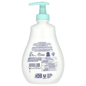 Molhe o cabelo e a pele do bebê com água morna e lave suavemente. Em seguida, aplique uma loção hipoalergênica sem perfume para bebês, para manter a hidratação por 24 horas. Ideal para uso diário.
