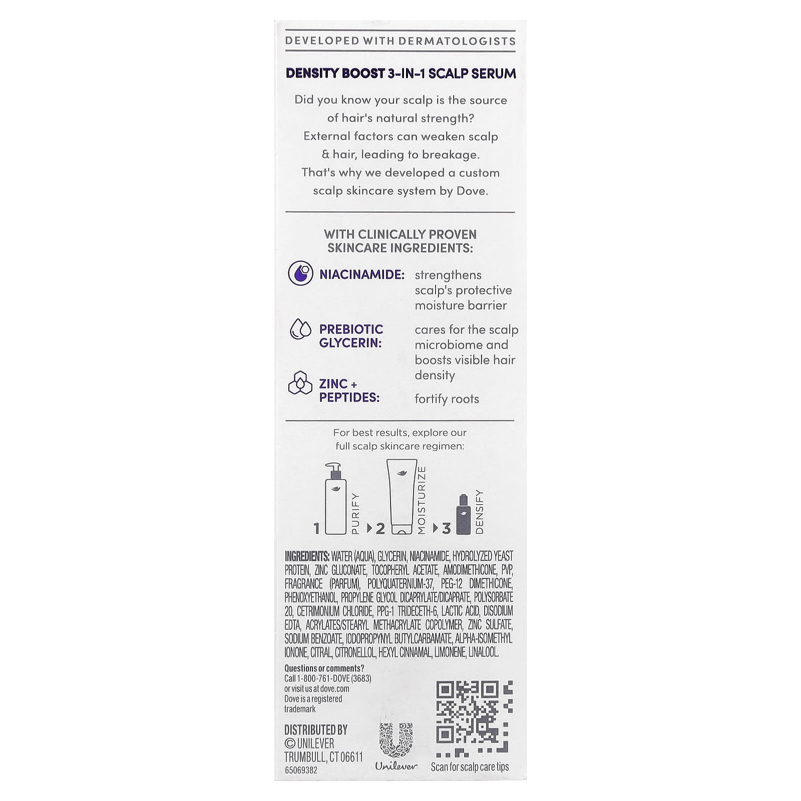 Dove Derma Scalp Sérum 3 em 1 para o Couro Cabeludo Density Boost 59 ml (2 fl oz) – Dove Cuidados Pessoais Cabelos Tratamentos capilares Beleza Beleza por Ingrediente Cuidado para a pele com niacinamida.