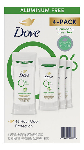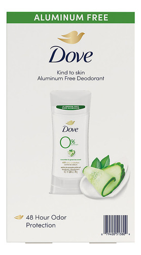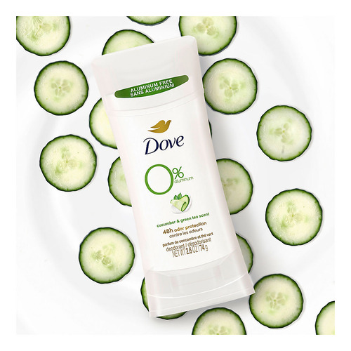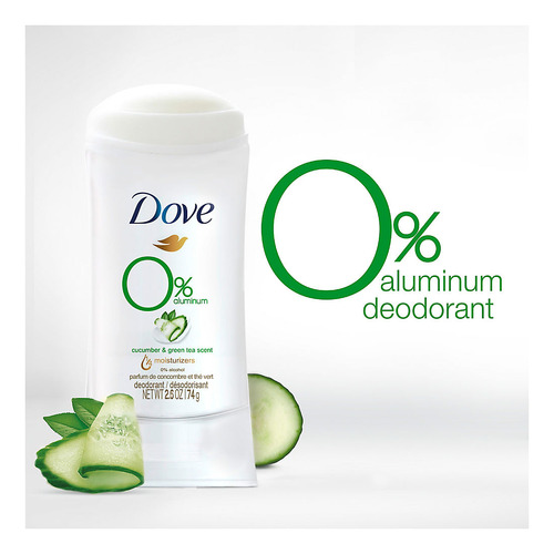 crueldade: globalmente, o desodorante Dove não é testado em animais e é certificado como livre de crueldade pela PETA. Inclui desodorante de pepino e chá verde, 4 unidades/2,6 onças.