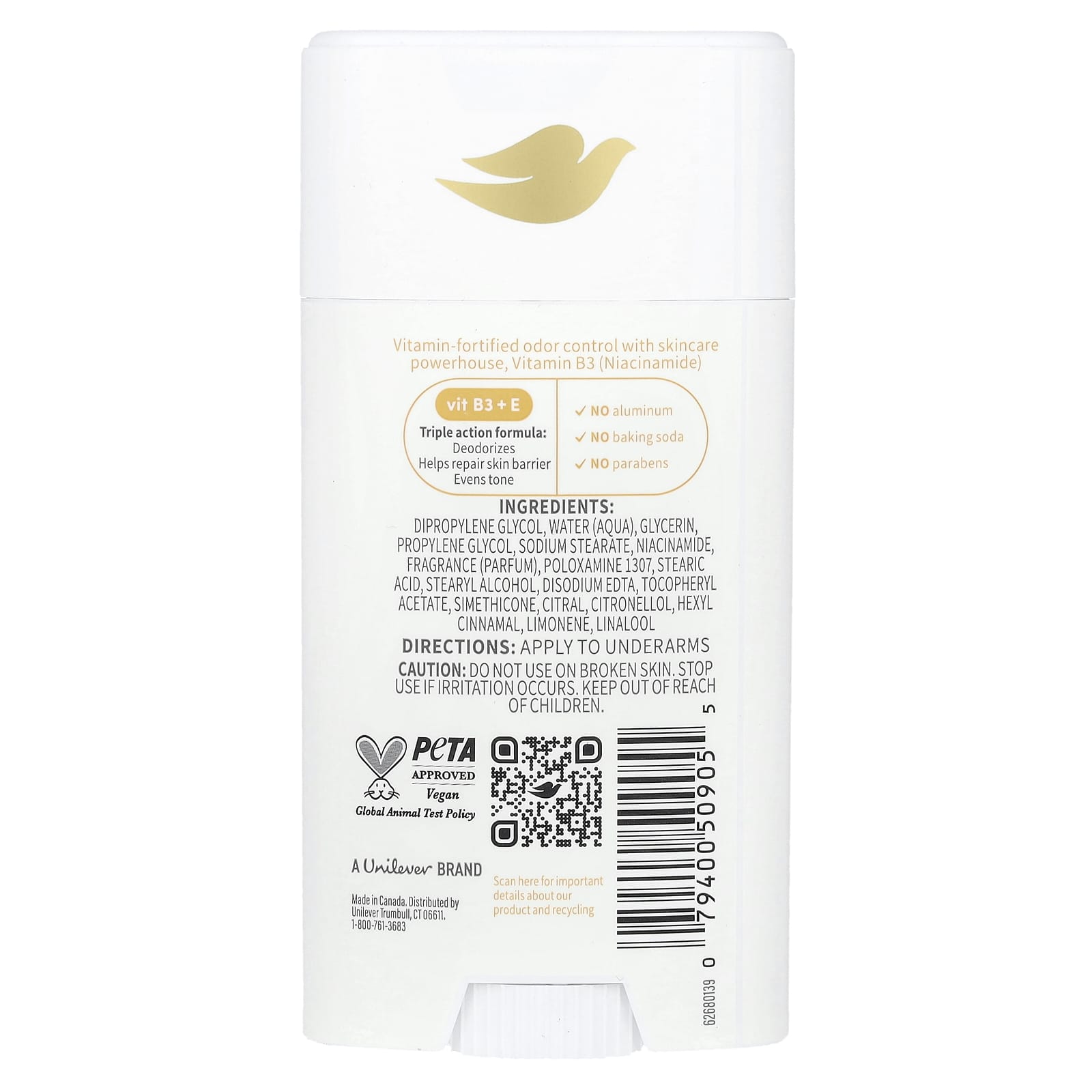 Controle de odores fortificado por vitaminas com potência para cuidados com a pele, Vitamina B3 (Nicotinamida).