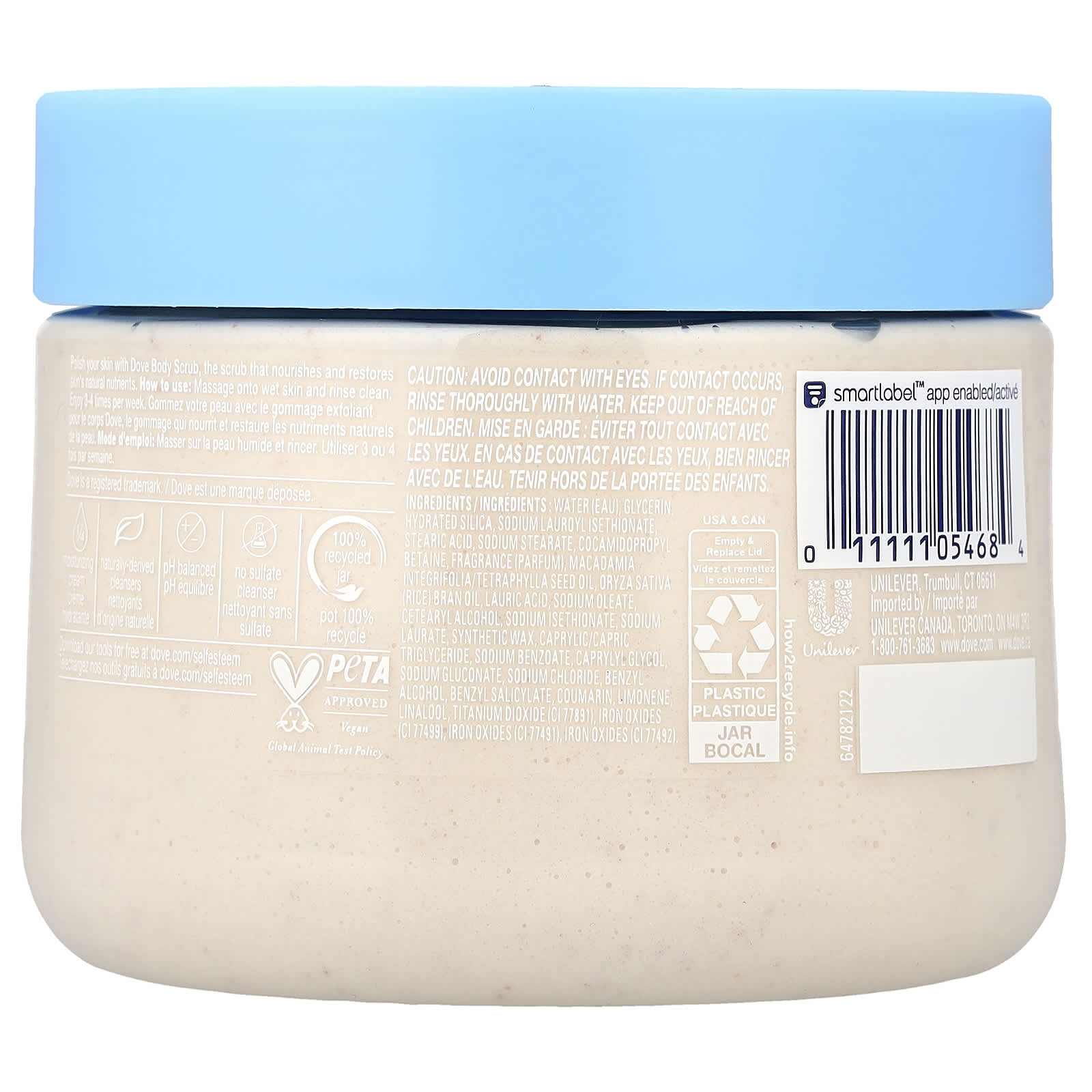 Dove Esfoliante Corporal Macadâmia Triturada e Leite de Arroz 425 g (15 oz) – Dove Cuidados Pessoais Banho Esfoliantes Corporais Beleza Beleza por Ingrediente Cuidados com a Pele com Arroz.
