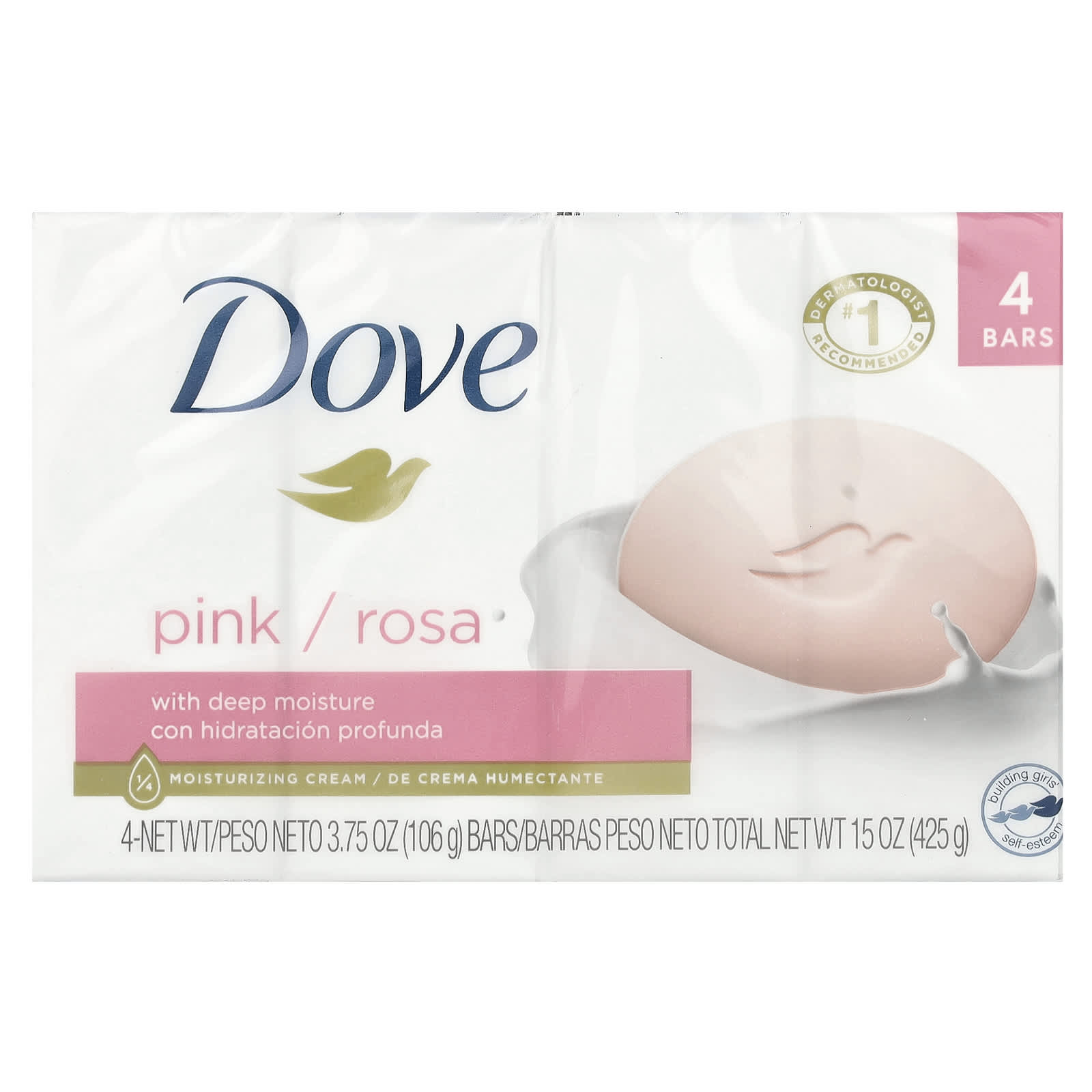 Dove Sabonete em Barra de Beleza com Umidade Profunda Rosa 4 Barras 106 g (375 oz) Cada – Dove Cuidados Pessoais Banho Sabonete em Barra Beleza Limpeza Facial Sabonetes Faciais.