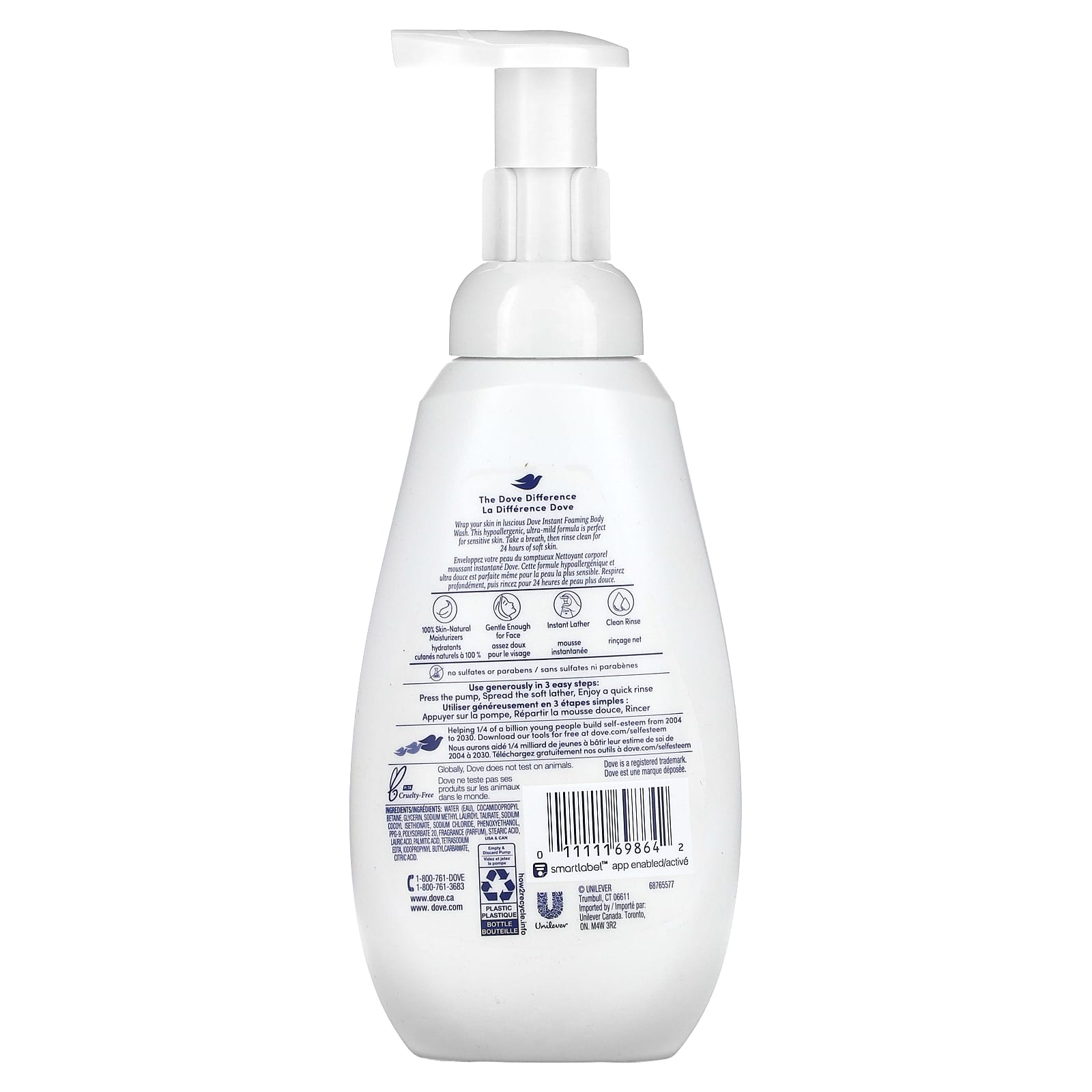 Envolva sua pele com o saboroso Sabonete Líquido Instantâneo de Espumação Dove. Esta fórmula hipoalergênica e ultrassuave é perfeita para peles sensíveis. Respire e enxágue por 24 horas a pele macia.