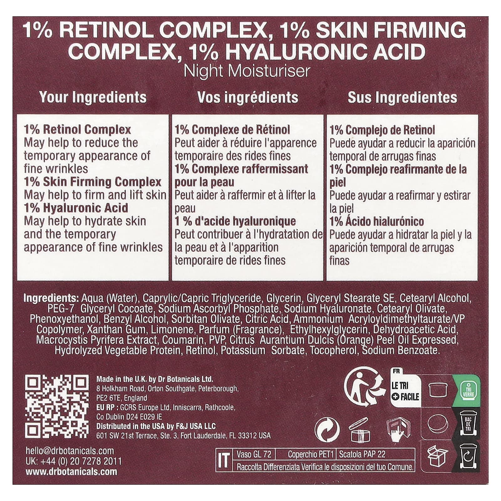Dr. Botanicals Re1 Complexo de Retinol Complexo Firmador para a Pele e Ácido Hialurônico Hidratante Noturno 60 ml (2 fl oz)