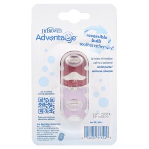 O Dr. A chupeta Brown’s™ Advantage™ é uma chupeta totalmente sitrica com bulbo reversível que se encaixa na boca do bebê com o lado direito para cima ou para baixo.