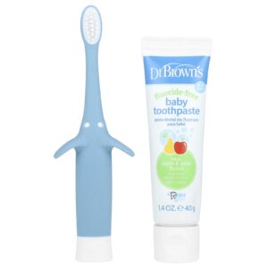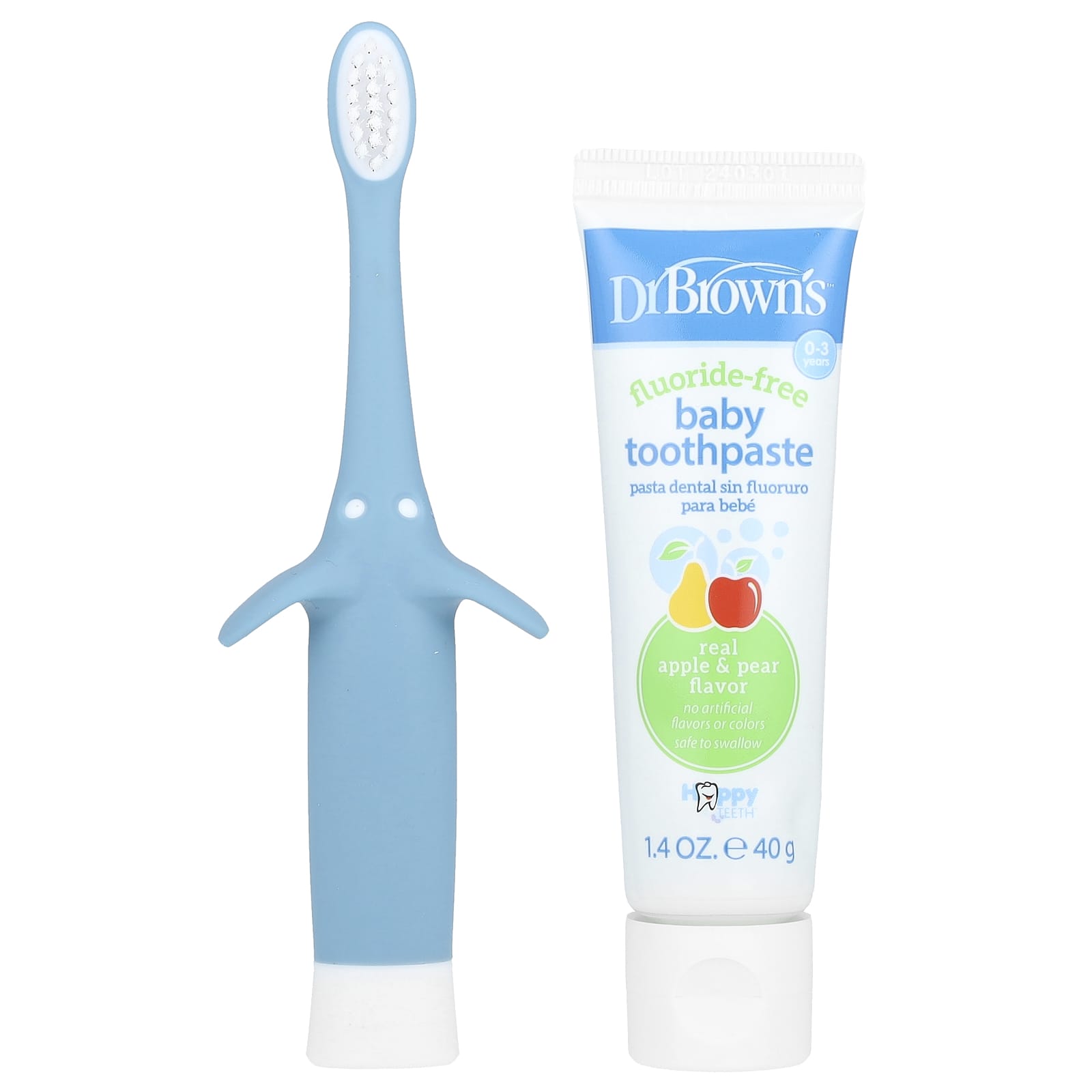 Dr. Browns Conjunto de Escova de Dentes de Bebê a Bebê 0 a 3 Anos Azul Maçã e Pera Conjunto de 2 Unidades – Dr. Brown’s Bebês e Crianças Higiene Bucal Escovas de Dente para Bebês e Crianças Creme Dental para Bebês e Crianças.