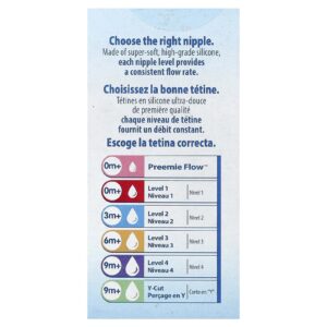 Nosso formato de bico semelhante a um seio estimula uma pega adequada para uma experiência de alimentação com mamadeira mais natural.