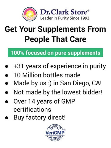 • Toda proteína pura: Aproveite os benefícios de nossos suplementos, encontrados pelo Dr. Hulda Clark, sem nenhum dano. Essas cápsulas estão livres de agentes de fabricação, revestimentos, cores, ligantes, enchimentos e idade de liberação. Não possui estearato de magnésio, sílica, dióxidos, sulfatos, amido, soja, nozes ou laticínios. !