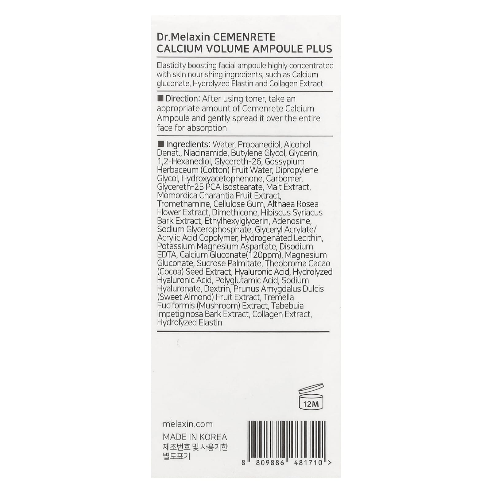 Dr.Melaxin Cemenrete Ampola Plus de Cálcio Intenso 30 ml (101 fl oz) – Dr.Melaxin Beleza Tratamentos e Séruns Tratamentos e Séruns K-Beauty.