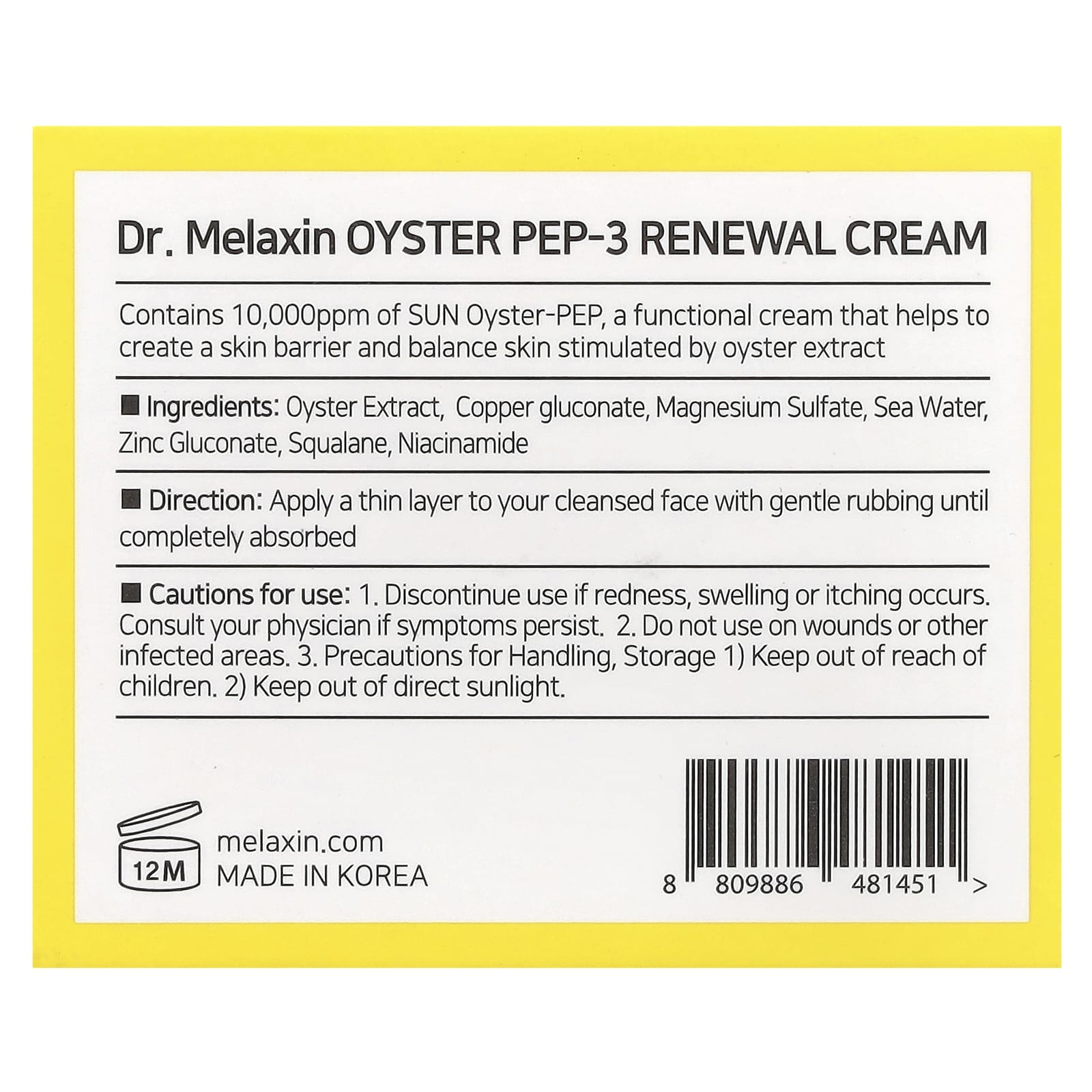 Dr.Melaxin Creme Renovador Oyster Pep-3 50 ml (169 fl oz) – Dr.Melaxin Beleza Beleza por Ingrediente Cuidado para a pele com niacinamida Hidratantes Faciais e Cremes Hidratantes e Cremes K-Beauty.