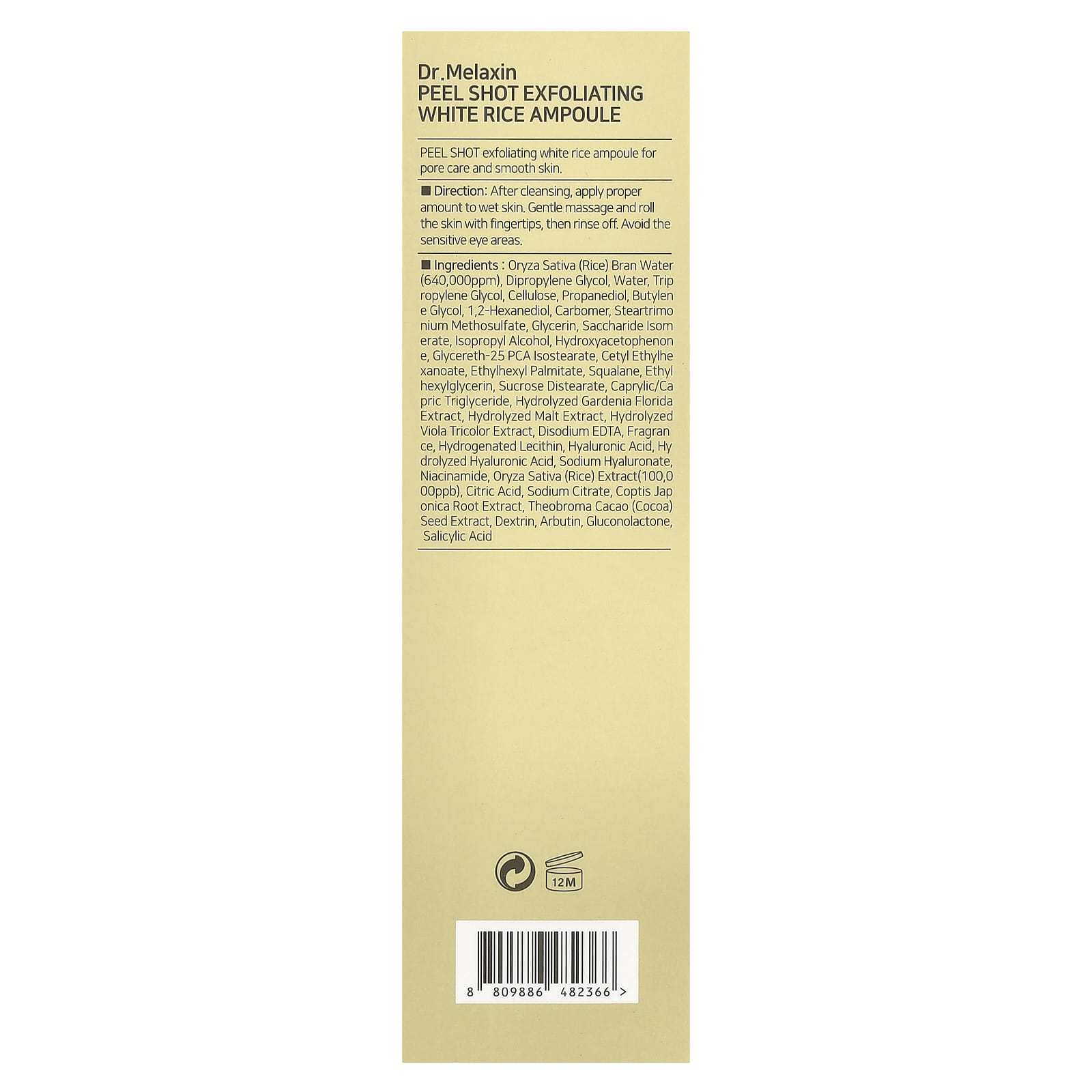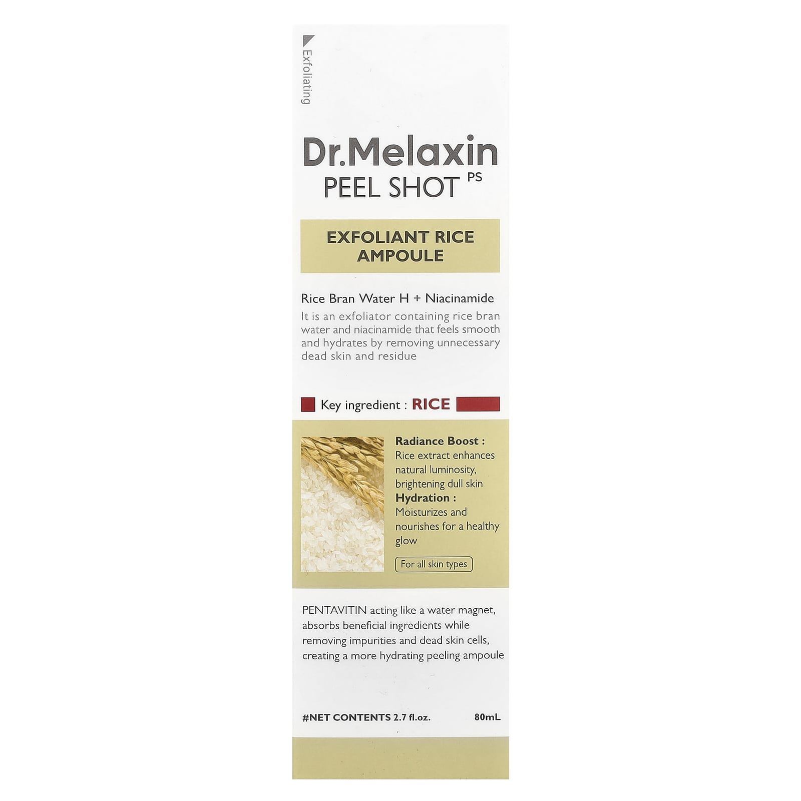 Dr.Melaxin Peel Shot Ampola de Arroz Esfoliante Para Todos os Tipos de Pele 80 ml (27 fl oz) – Dr.Melaxin Beleza Tratamentos e Séruns Séruns Faciais Beleza por Ingrediente Cuidado para a pele com niacinamida.