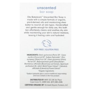 O Sabonete em Barra Sem Perfume da Ola Botanicals™ é feito com uma fórmula simples de óleos orgânicos derivados de plantas e manteiga de karité hidratante para nutrir todos os tipos de pele. Feito à mão e suave o suficiente para uso diário, este sabonete em barra limpa e acalma a pele seca, mantendo a hidratação natural, deixando-a calma e hidratada.