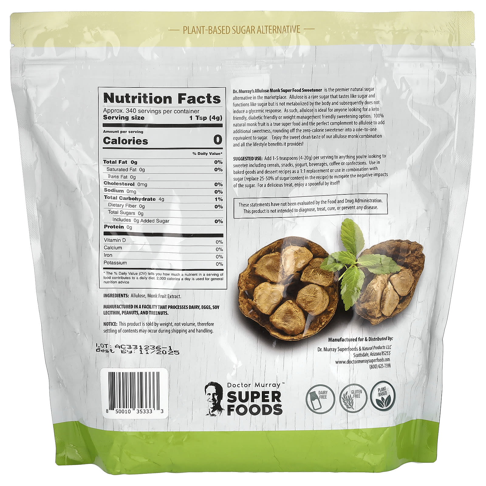 Dr. Murrays Allulose Monk Alternativa ao Açúcar 136 kg (48 oz) – Dr. Murray’s Alimentos Mel e adoçantes Alulose Fruta do Monge.