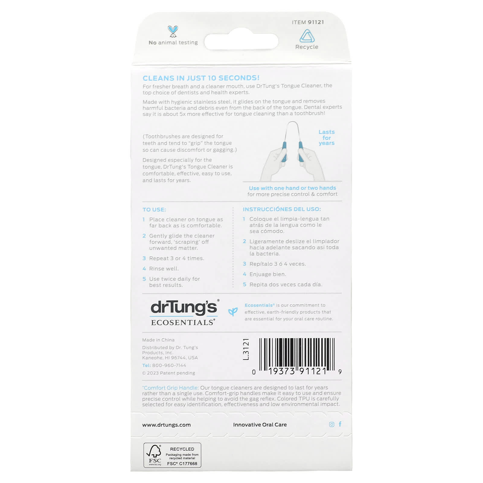 Projetado especialmente para a língua, o Limpador de Língua da DrTung é confortável, eficaz, fácil de usar e dura anos.